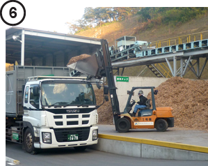 木質チップとして再資源化されたのち、製紙・建材メーカー様の工場などへ出荷されていきます。